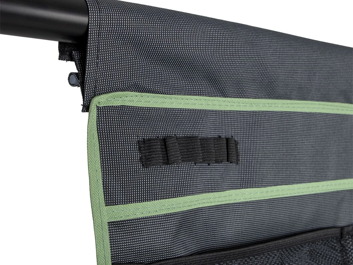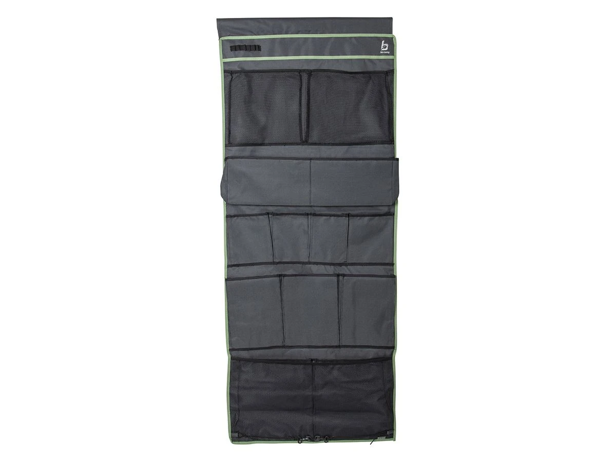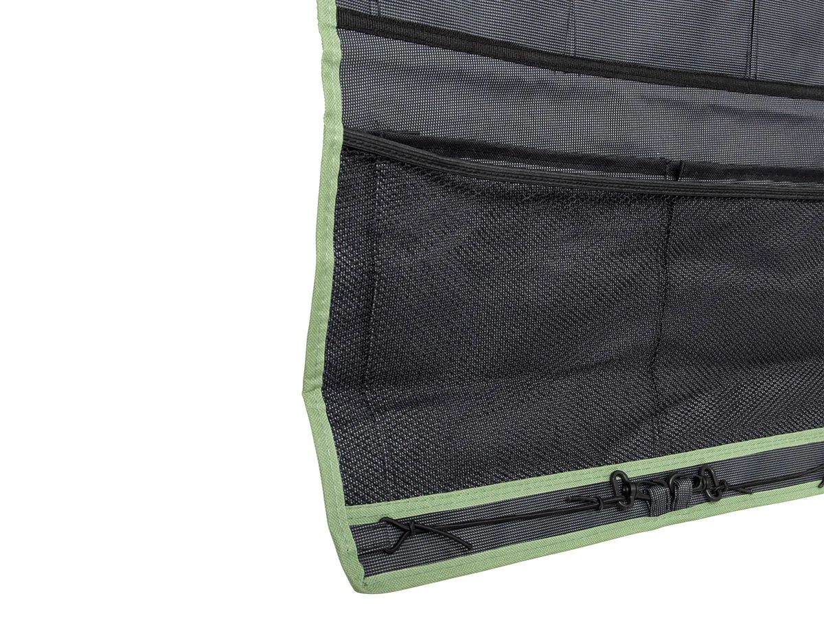 Heb jij kleine spullen altijd door de hele tent heen liggen, en ben je het overzicht dan helemaal kwijt? Maak dan gebruik van een tentschort, deze is voorzien van 13 verschillende vakjes waarvan 2 met mesh afgewerkt. De perfecte manier om bijvoorbeeld je zonnebrandcrème, zonnebril, tijdschriften en keukengereedschap in op te bergen.