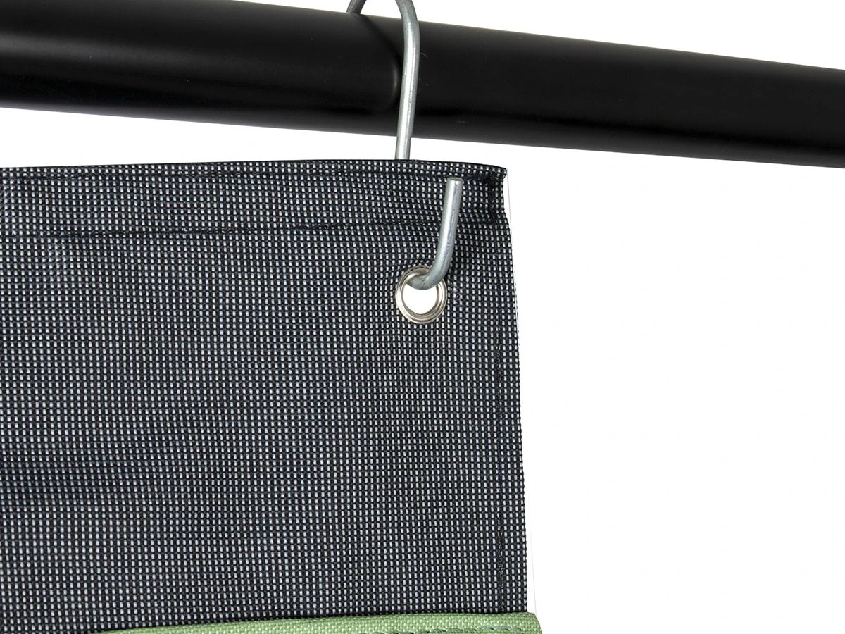 Deze tentshort kun je op drie verschillende manieren ophangen. Bevestig hem met klittenband om een tentstok, maak gebruik van de pees of hang hem op met S-haken aan de ophang ogen.