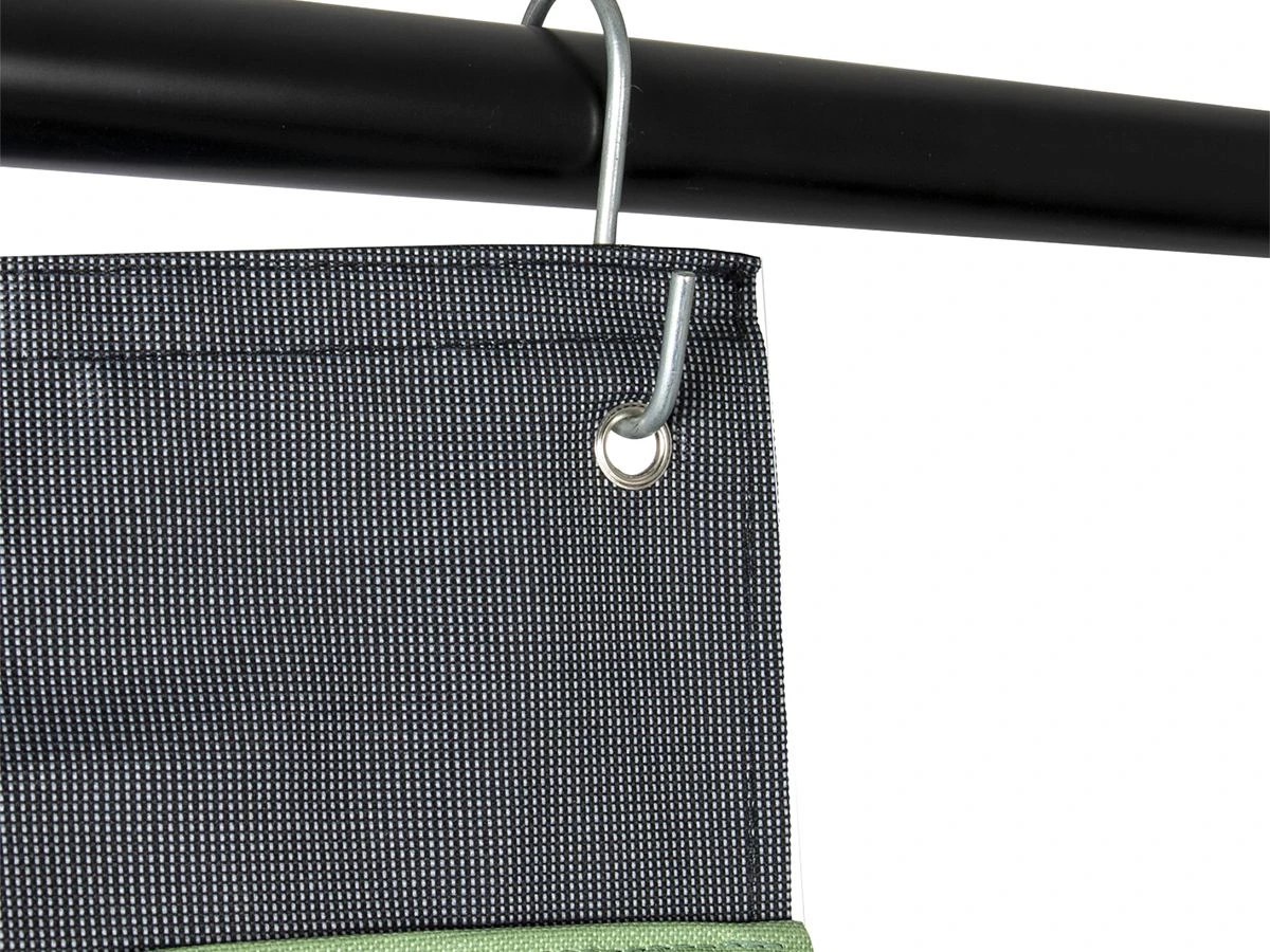 Het Bo-Camp tentschort 16-vaks grijs blauw met ophangogen en pees voor bevestiging aan caravanrails en klittenband voor bevesting om nokstok.