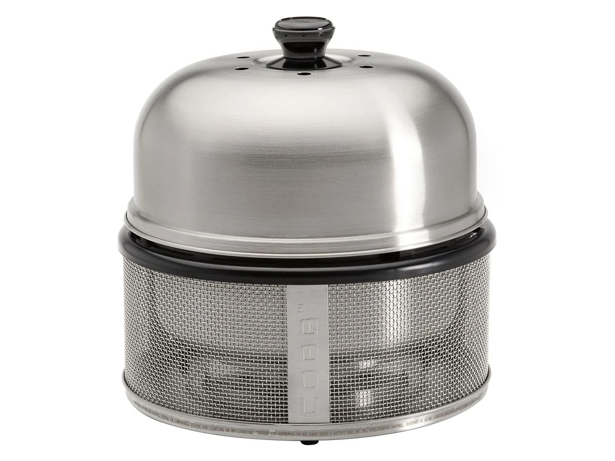 De mantel van de tafelbarbecue is gemaakt van roestvast staal, dat geeft de barbecue een mooie strakke look. De COBB Premier bestaat uit een mantel, kom, brikettenmandje en deksel.