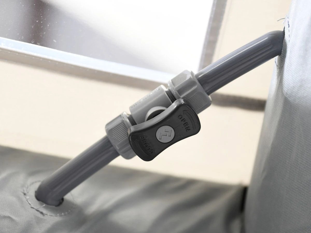 De Grande Air-serie van Dometic kenmerkt zich door de diepte van 300 cm. Hierdoor heb je in de Grande Air een mooi groot, rechthoekig oppervlak. Plek genoeg dus voor je tafel, stoelen en overige kampeeruitrusting. Het frame van de voortent is volledig opblaasbaar, en daardoor is het opzetten een fluitje van een cent. Schuif de voortent door de rail van je camper of caravan, sluit de meegeleverde handpomp aan en oppompen maar!