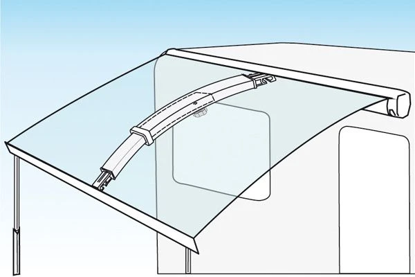 De Fiamma Rafter Pro is een gebogen aluminium spanstok waarmee je het luifeldoek van je cassetteluifel extra kunt spannen. De gebogen vorm zorgt voor een goede afwatering bij regen en voorkomt flapperen van het luifeldoek bij wind. De rafter is traploos in lengte verstelbaar d.m.v. een stelschroef. Dankzij de kunststof eindstukjes is deze stang in bijna elke cassetteluifel te gebruiken.