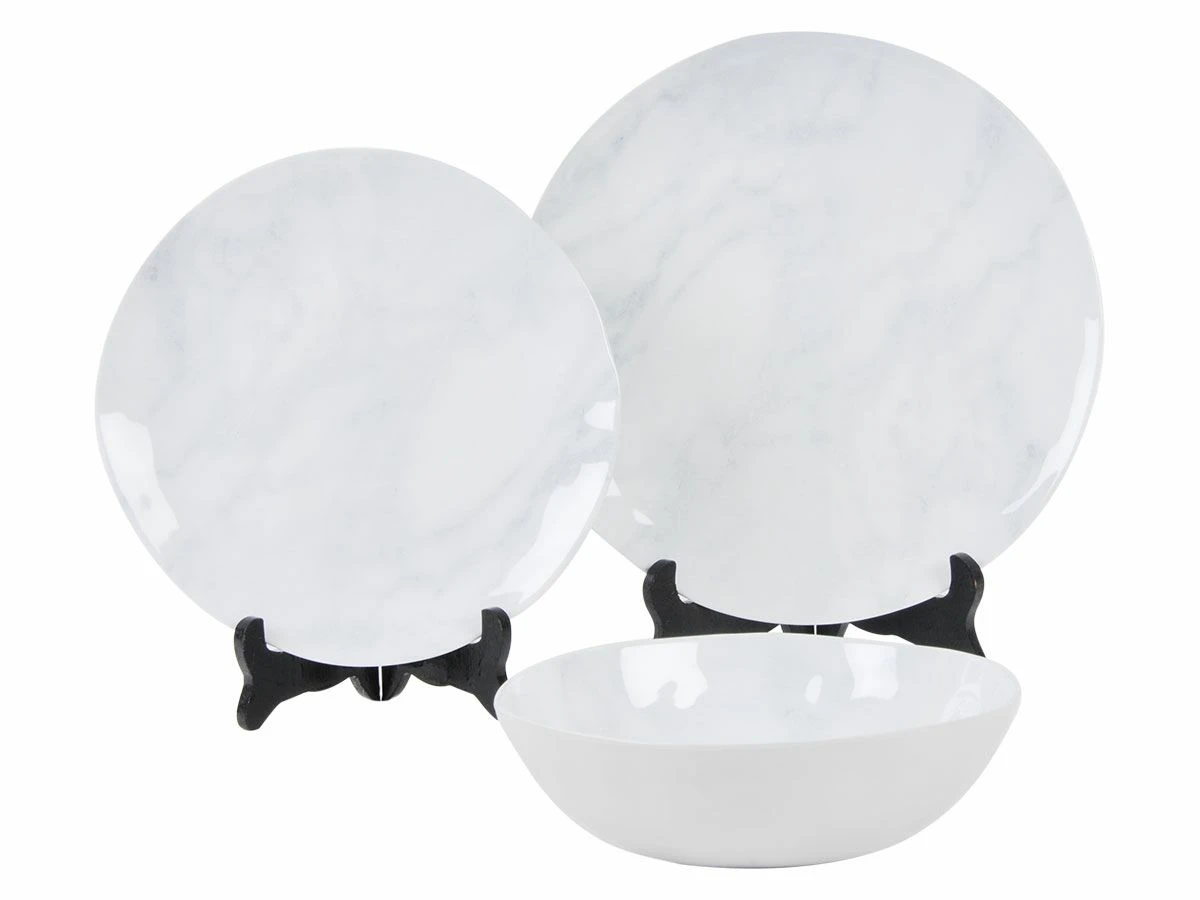 De set is licht van gewicht en makkelijk te stapelen. Het servies is voorzien van een glanzende marmer look voor een natuurlijk effect.