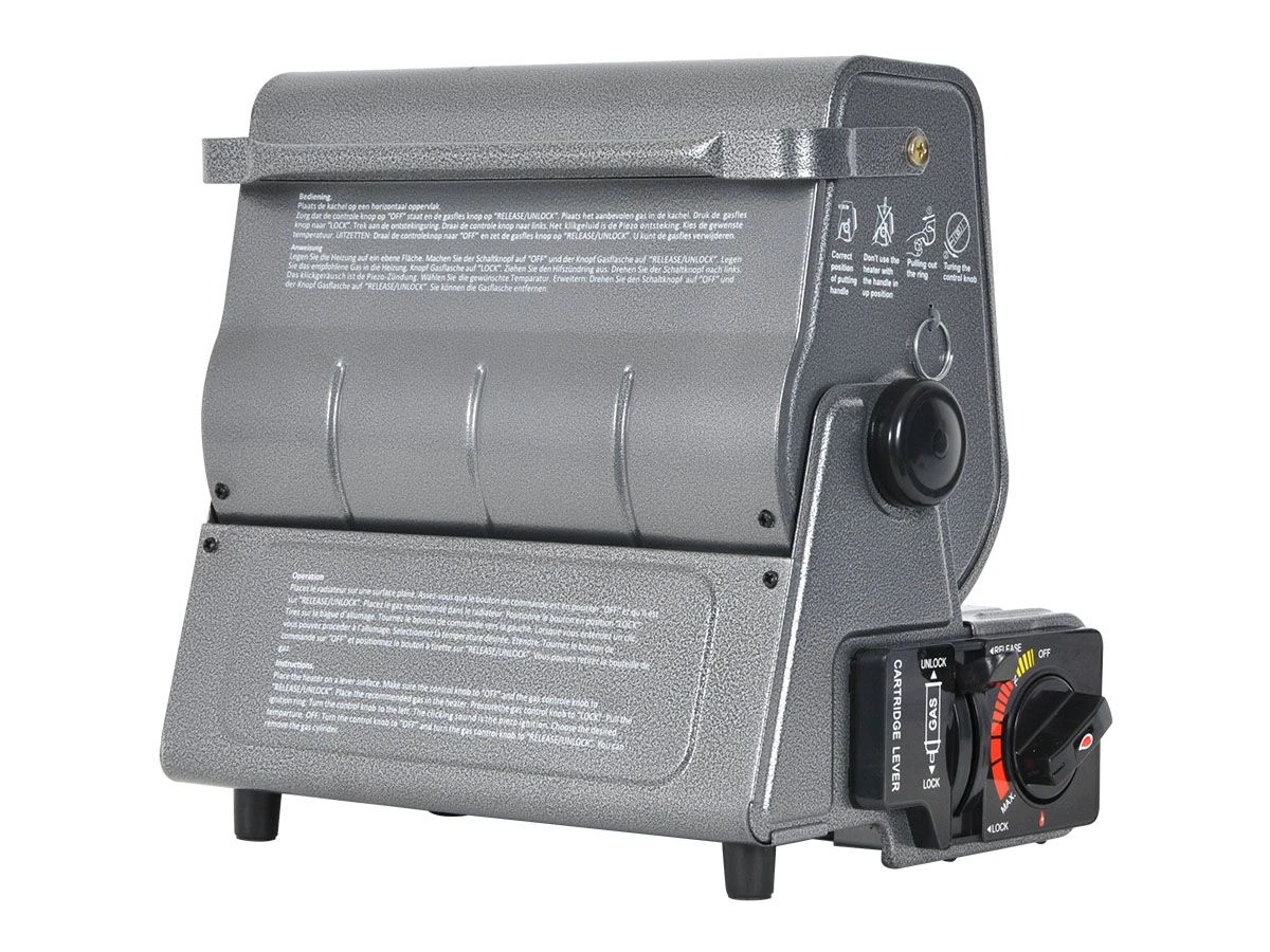 Deze draagbare gaskachel is makkelijk instelbaar door de verstelbare schakelaar. Veilig in gebruik door automatische uitschakeling bij overbelasting. De gas cilinder is eenvoudig te installeren. Ingebouwd veiligheidsmechanisme voorkomt doorbranden bij verkeerde installatie.