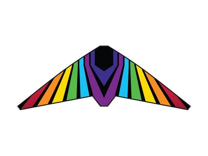 Een leuke vlieger van 120 centimeter met regenboogkleuren.