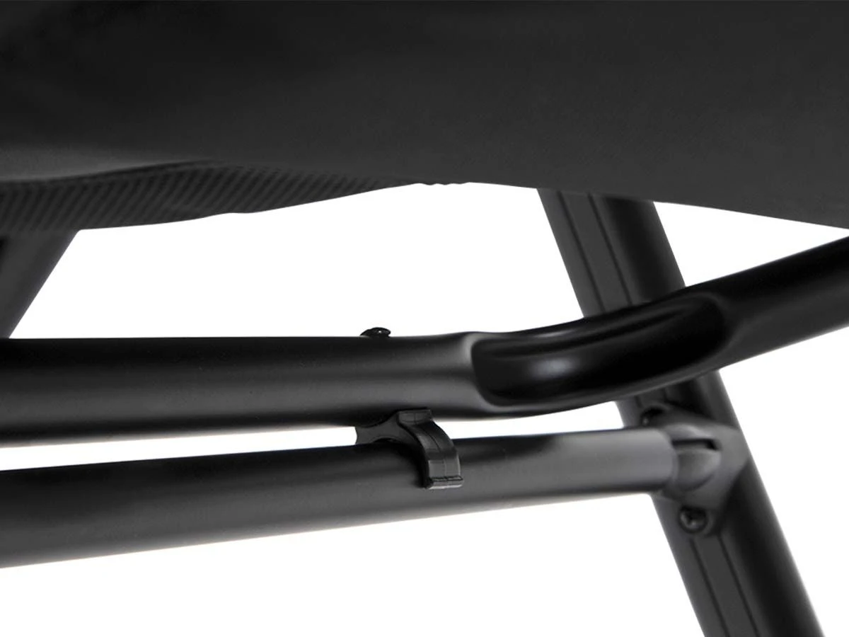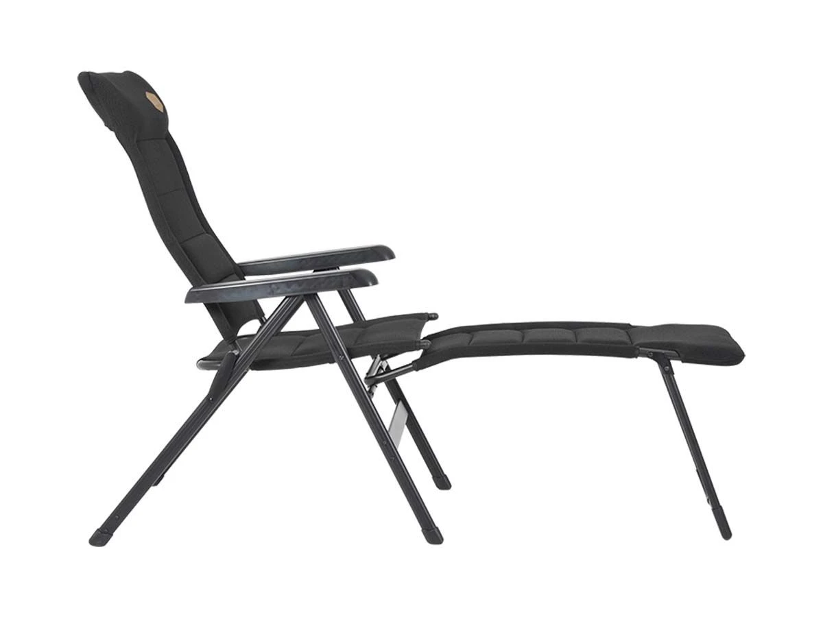 Het frame is gemaakt van aluminium en de stof is van 3D gepolsterd polyester dat zorgt voor maximaal comfort. De voetenbank is na gebruik plat in te klappen zodat hij eenvoudig vervoerd en bewaard kan worden.