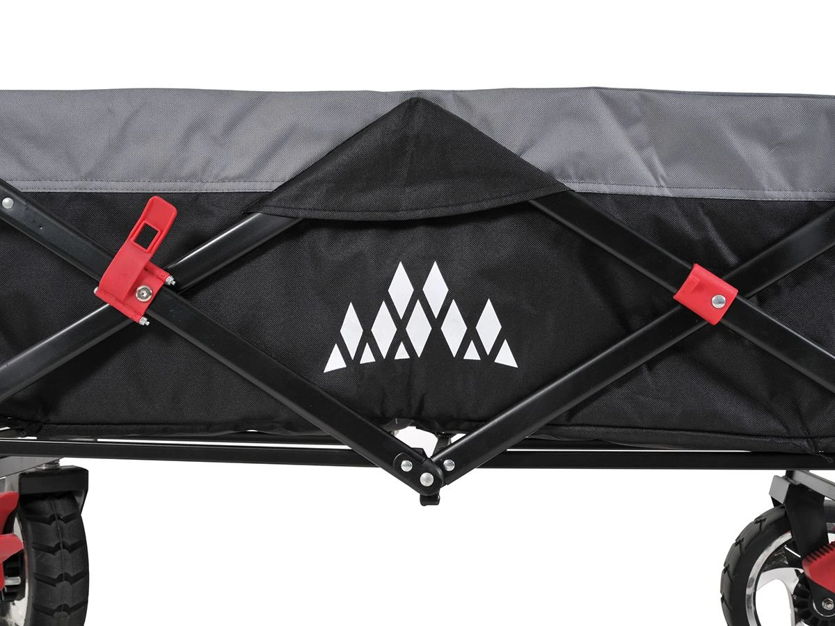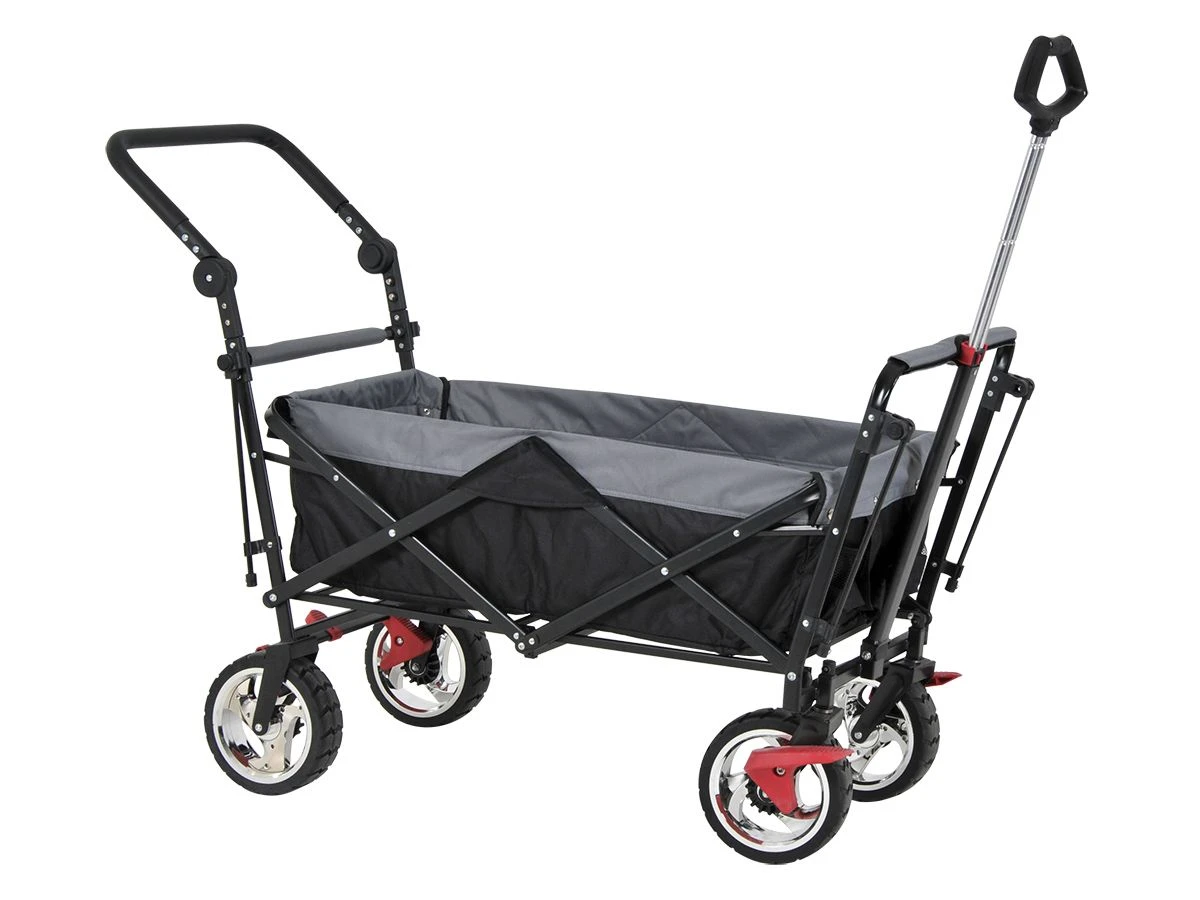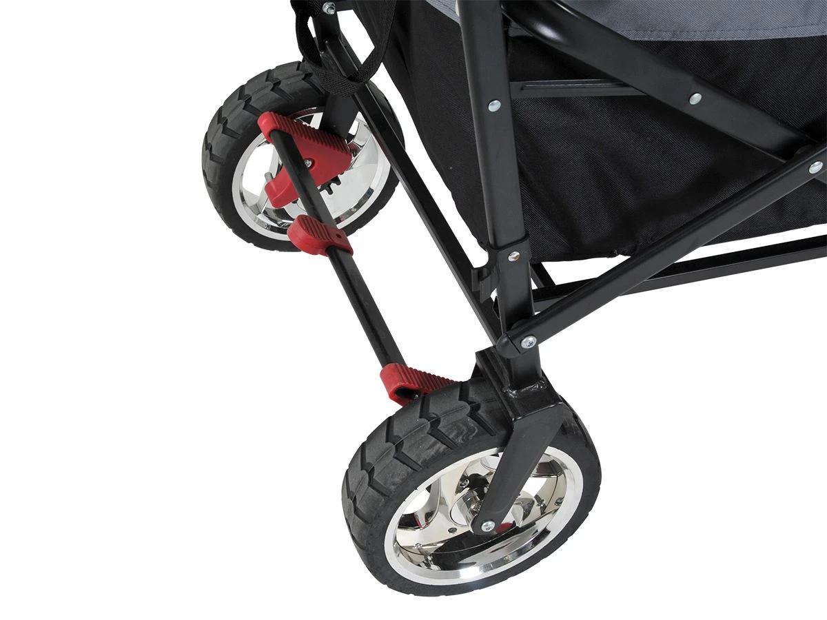 Deze bolderkar is voorzien van een trekstang aan de voorkant en een duwbeugel aan de achterkant. Zowel de trekstang als de duwbeugel is in hoogte verstelbaar. De duwbeugel is naar onderen weg te klappen en de trekstang kan met een veiligheidsclip vast gezet worden wanneer deze niet in gebruik is. De kar is voorzien van een dubbel remsysteem aan de voor- en achterkant.