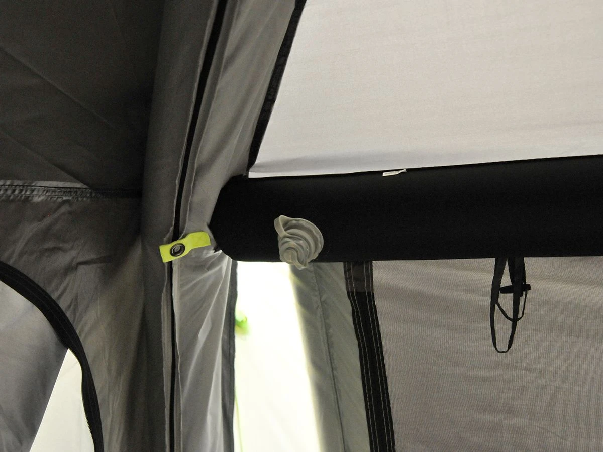 De oppompbare luchtslangen zorgen voor een stabiele constructie. De luchtslangen zijn voorzien van een extra stevige ommanteling zodat het bijna onmogelijk is om deze te beschadigen. Het grote voordeel van luchtslangen is dat ze meedeinen bij windvlagen en altijd terug komen in de originele vorm en houding. Dit voorkomt schade en je hebt geen last van verbogen of gebroken tentstokken. Voor extra stabiliteit is de Ibiza voorzien van twee oppompbare dakliggers.