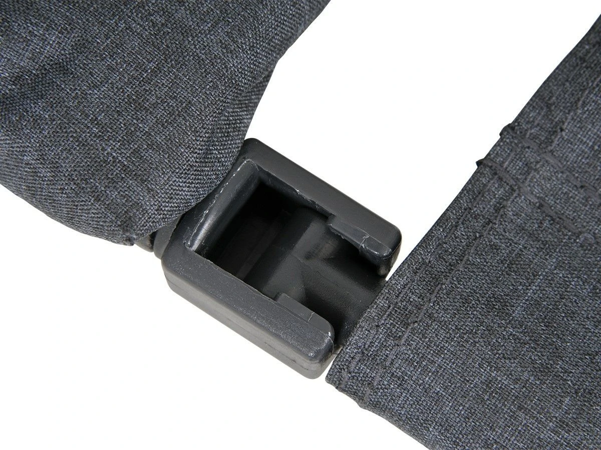 De voetensteun is gemaakt van lichtgewicht aluminium met een gepolsterd polyester bekleding.