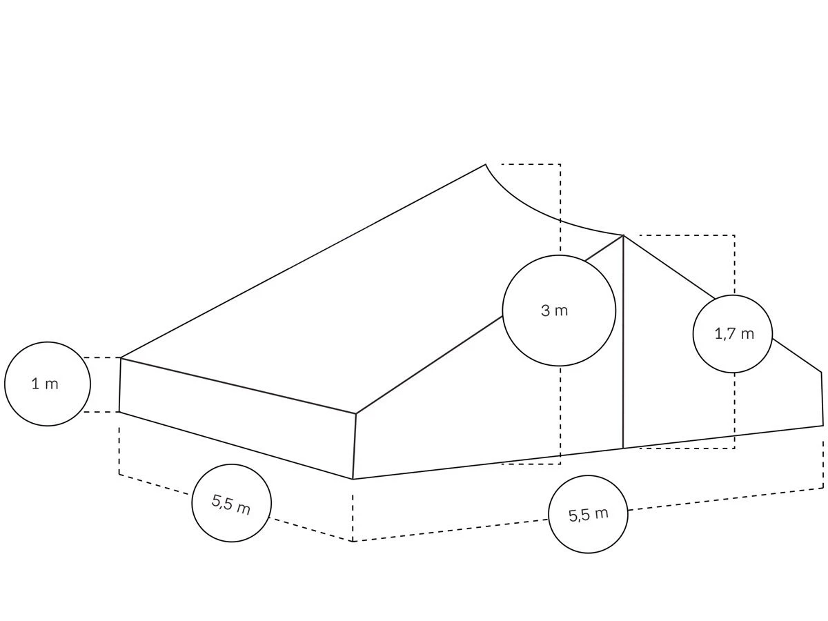 Alle wanden van deze tent kunnen volledig opgerold worden zodat er een zwevend dak ontstaat. Dit is ideaal om op warme zomerdagen een koele schaduwplek mee te creëren. De Schelde heeft dankzij de verschillende hoogtes een speels karakter. Zo zijn hebben de zijwanden een hoogte van 100 cm en de ingang heeft een hoogte van 170 cm. In het midden is de Schelde maar liefst 300 cm. De nok is voorzien van twee overdekte ventilatieopeningen die zorgen voor een optimale luchtcirculatie.