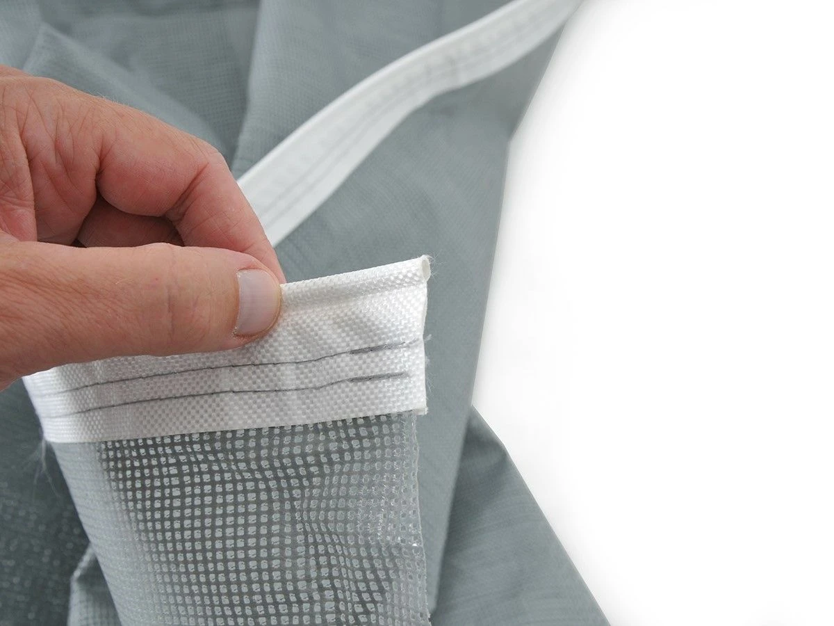 De Sol Front XL heeft aan de bovenkant een pees, deze schuif je eenvoudig in de rail van je Thule Omnistor-, Fiamma-, Dometic Prostor- of Obelink Markies-luifel. Met de meegeleverde scheerlijnen en haringen span je de Obelink Sol Front XL snel af. Zo zit je uit de zon, maar kan je toch nog van het uitzicht genieten.