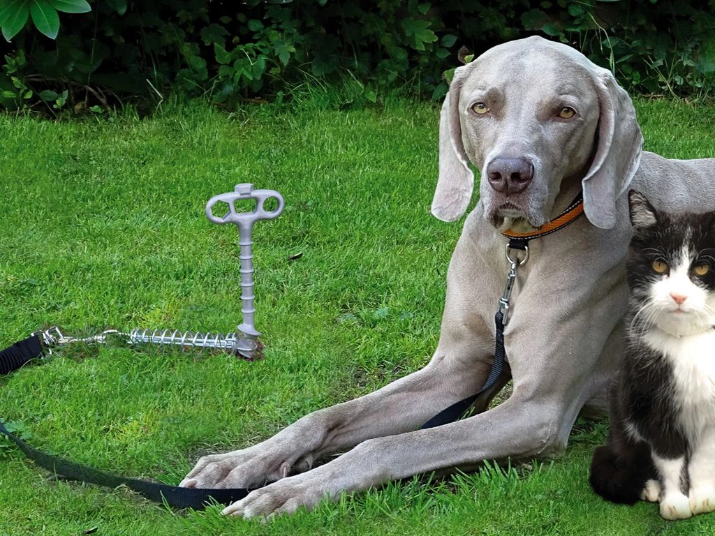 Draai de stevige haring in de grond en klik de riem van je huisdier er aan vast. Zo krijgen ze voldoende ruimte, maar zijn ze toch altijd in de buurt.