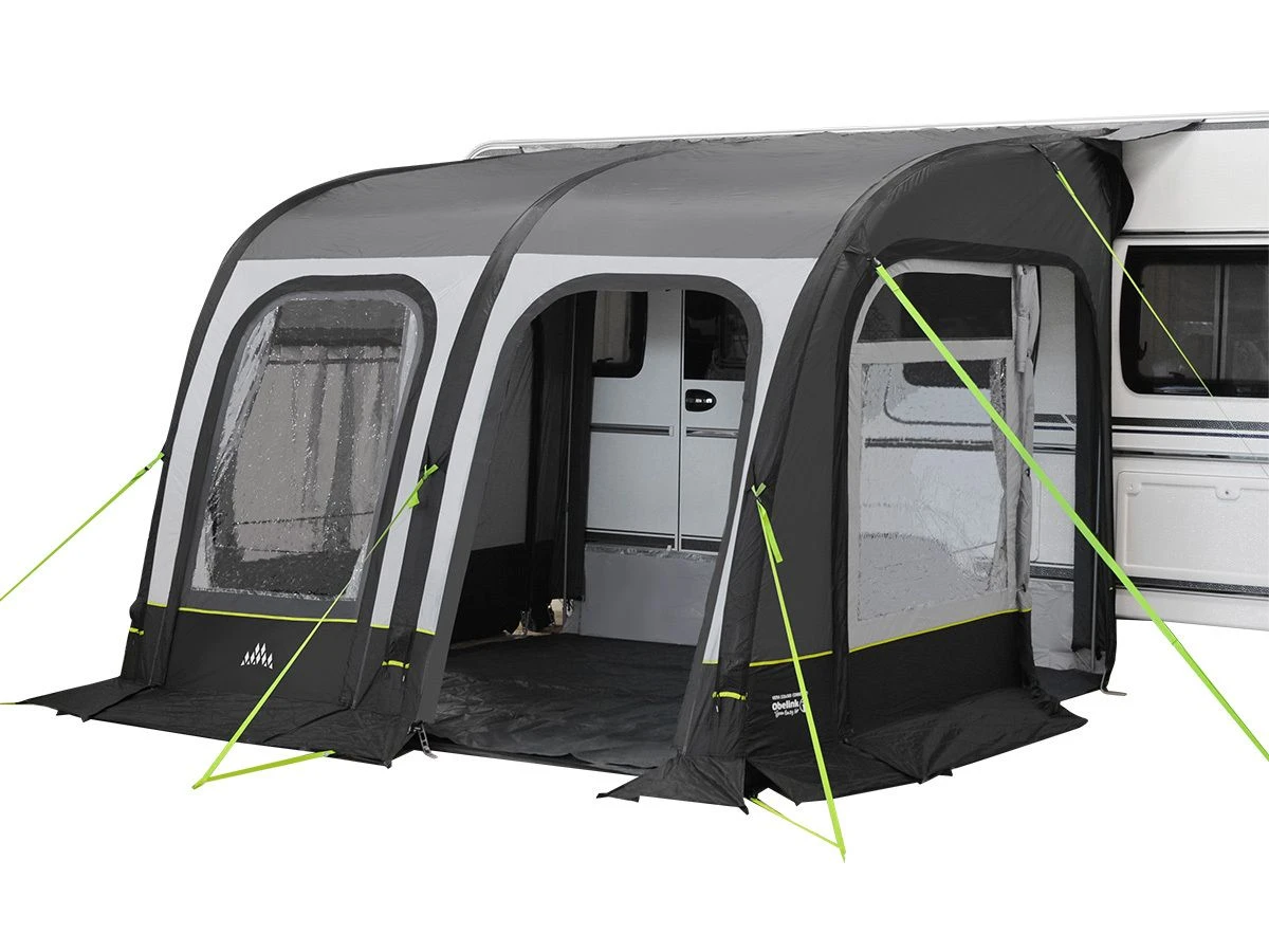 Bij de Obelink Viera 320 Easy Air Connected zijn beide zijwanden en alle deurpanelen in de voorwand volledig uit te ritsen. Als het lekker weer is tover je de voortent gemakkelijk om tot luifel door alle panelen er uit te ritsen. Afhankelijk van hoe je je caravan hebt geparkeerd kun je dankzij de uitgebreide mogelijkheden zelf kiezen welke deur je als hoofdingang gebruikt.