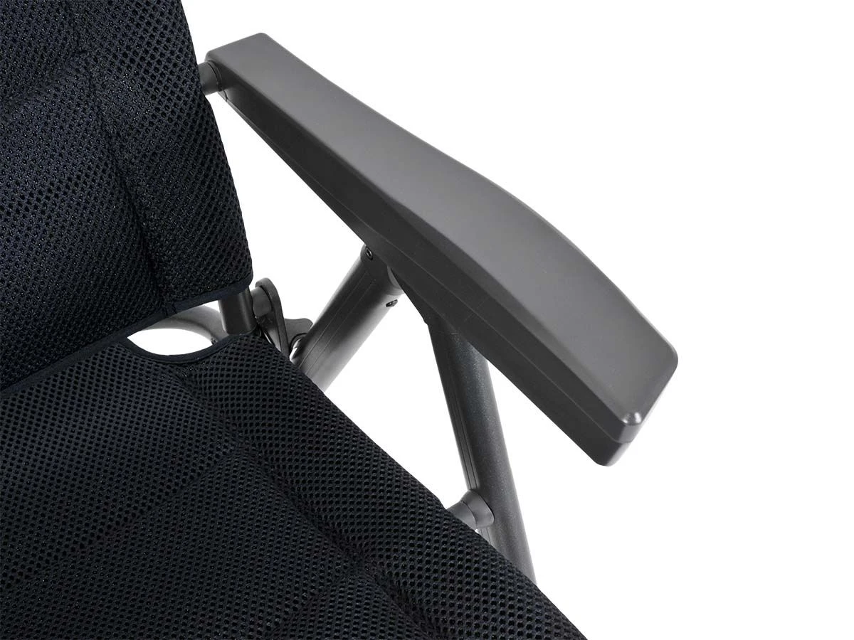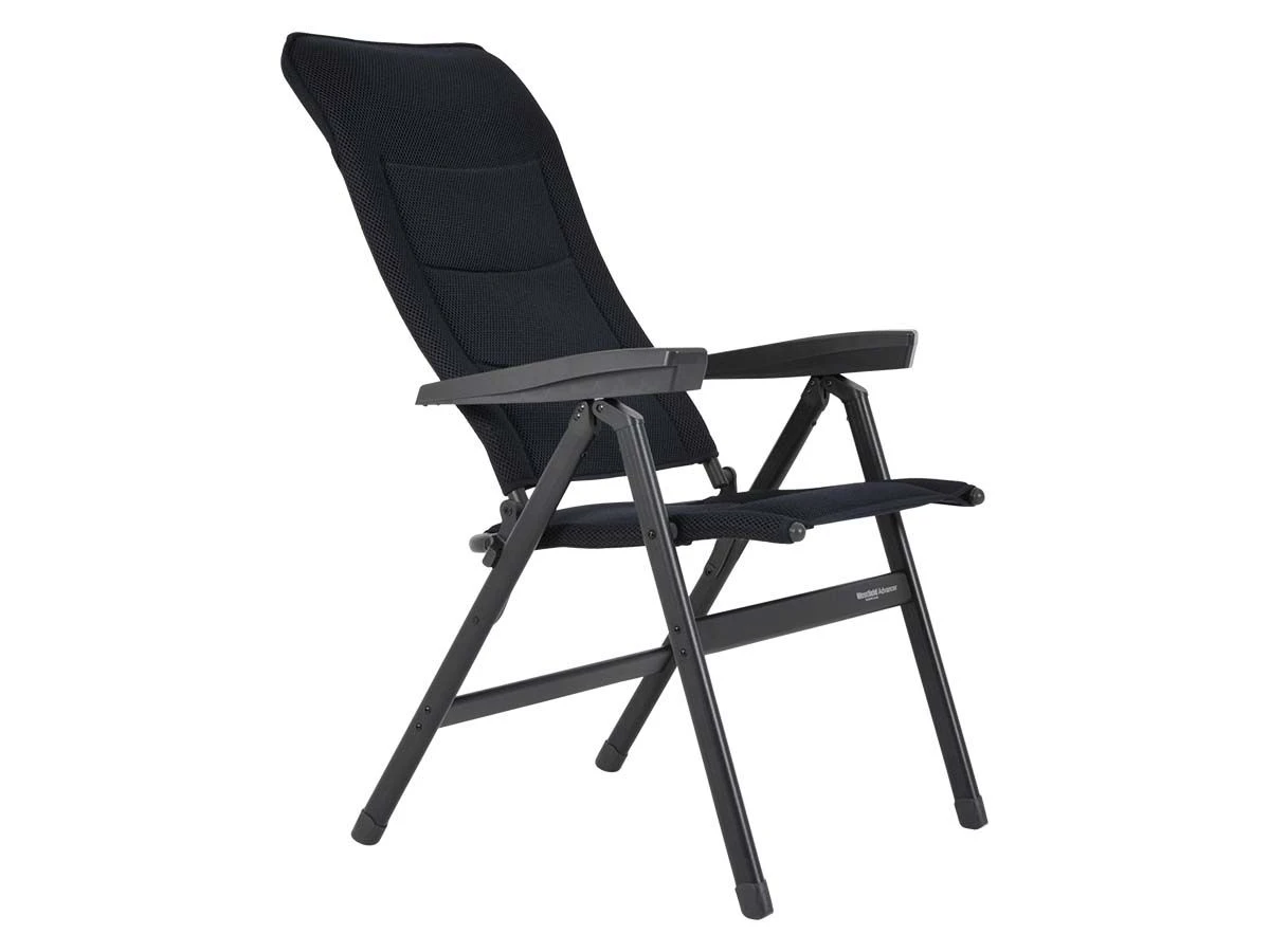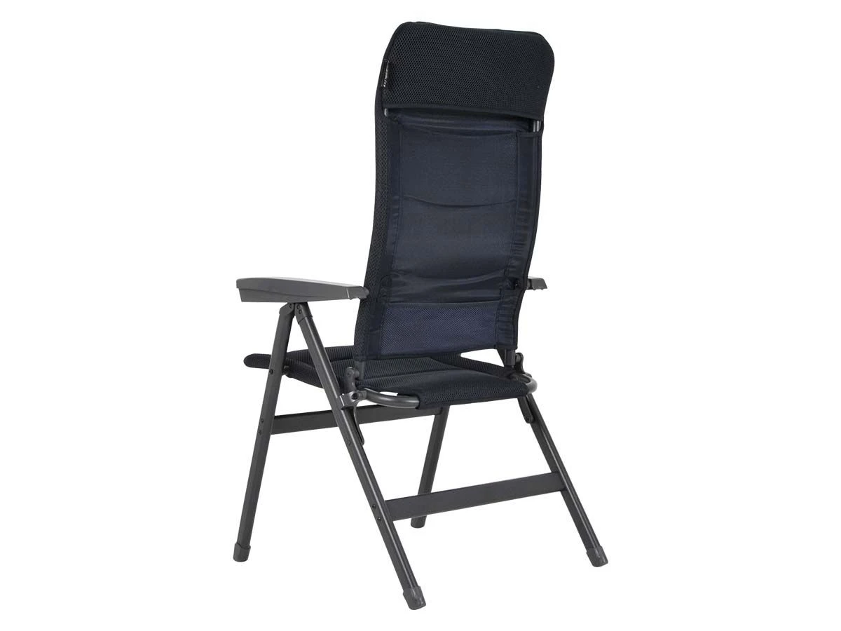 De Advancer heeft een aluminium frame, aluminium scharnieren en een aluminium voering in de armleuning wat de stoel extra stevig maakt. De bekleding is gemaakt van gepolsterd 3D polyester, dit is weerbestendig, duurzaam, ademend en snel drogend. Zeer comfortabel voor kampeervakanties in warme landen. Doordat de stof een hoog ademend vermogen heeft zul je niet snel zweten. En mocht de stoel per ongeluk nat regenen, dan is hij in een korte tijd weer droog en klaar om te gebruiken.